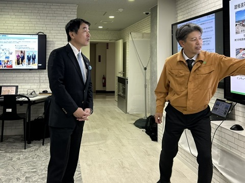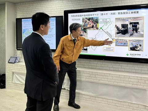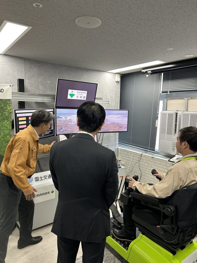 もともと、千葉県君津市にある操作席を、国交省DXルームに移して、能登半島の曽々木・渋田地区の工事現場で稼働している重機を遠隔で操作をしてもらいました。