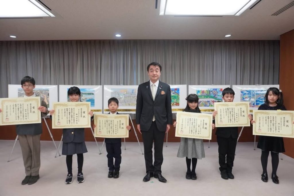 2025年12月24日。「国土と交通に関する図画コンクール」の授与式が行われ、国土交通大臣賞受賞者6名の皆さんに賞状を授与しました。