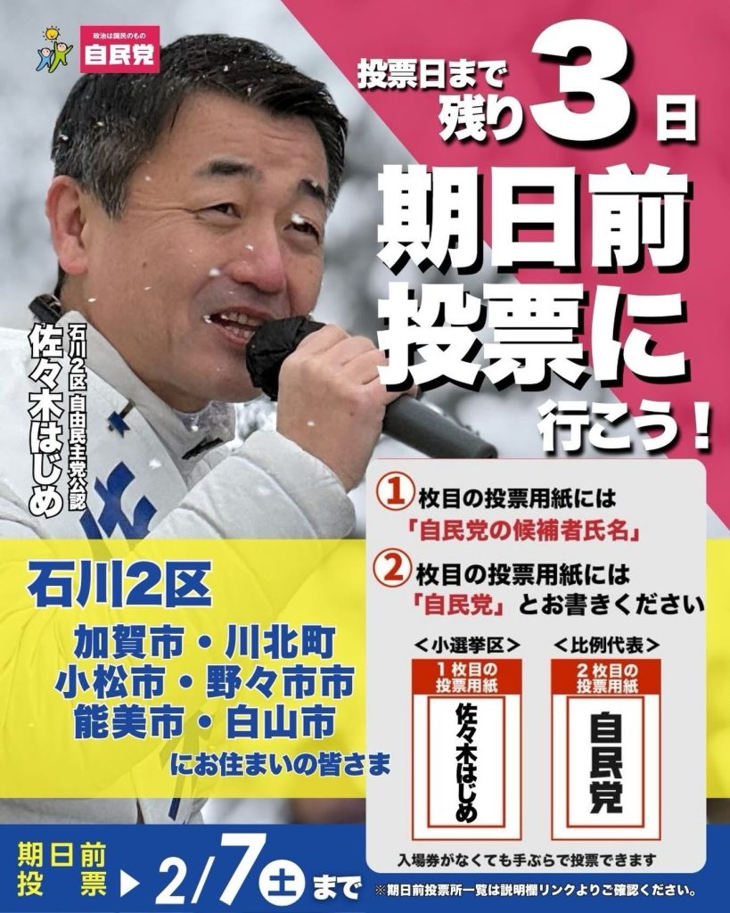 どうか期日前投票で、あなたの一票を【佐々木はじめ】に託してください。