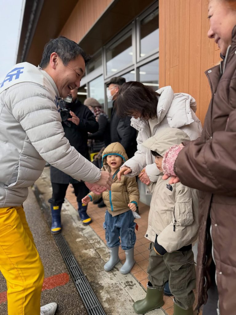 早朝は気温0度という厳しい寒さの中でしたが、それにもかかわらず、行く先々で多くの励ましのお声をいただきました。