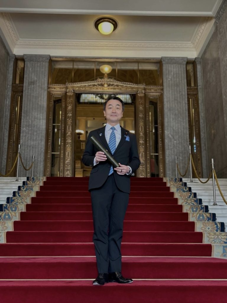 本日、6期目の初登院を迎え、当選した証である当選証書をお示しし、議員バッジを受け取りました。